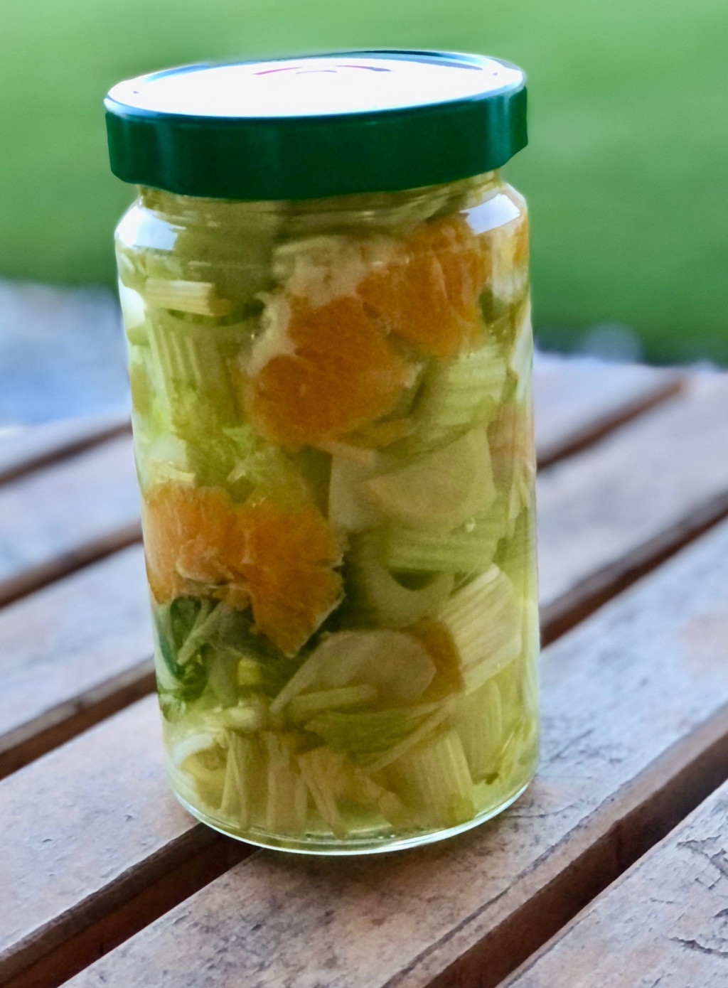 Narancsos gyömbéres szárzeller Összetétel: szárzeller, narancsgerezd, gyömbér , só, víz Allergén: zeller Szavatosság: 2024.02.09 fogyasztható, felbontás után hűtőben tartandó, nem tartalmaz tartósító szert Méregtelenítő hatása van, ugyanakkor A-B-C és K vitamint, foszfort kalciumot és vasat is tartalmaz . A mennyiségek változó arányban fordulnak elő az üvegben.
