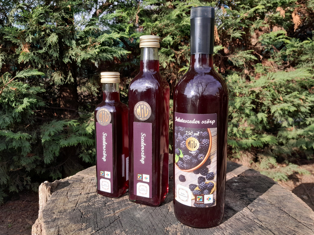 Magas gyümölcslé-tartalmú feketeszeder gyümölcsszörp. A 2024-es Magyar Ízek Versenyén bronz minősítéssel díjazott termék. Összetevők: feketeszeder-lé (min. 55%), cukor, víz, citromlé, citromsav.