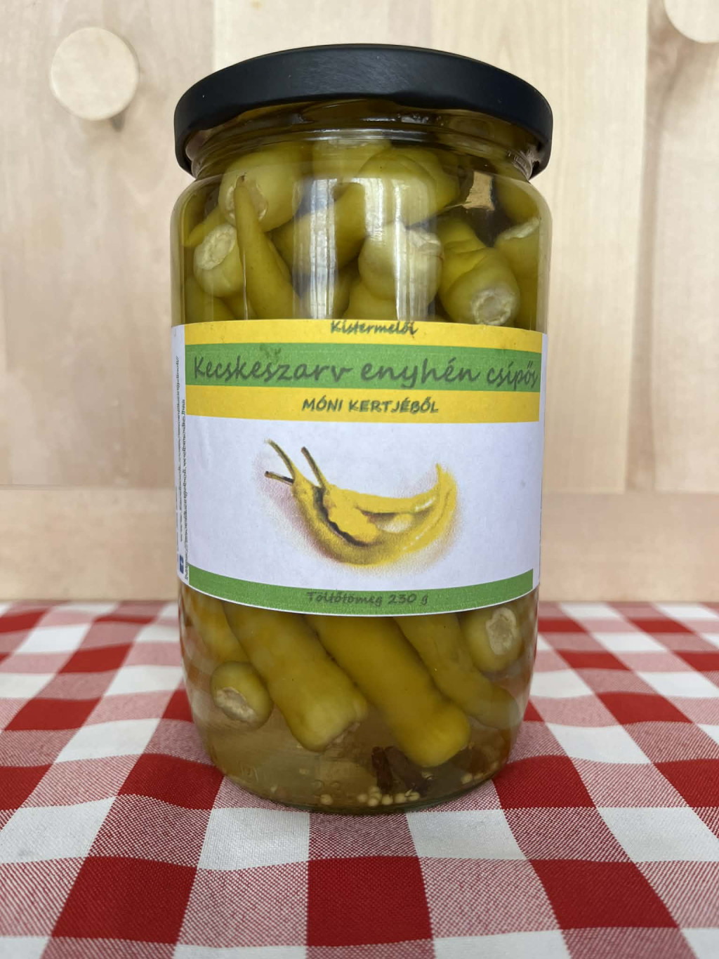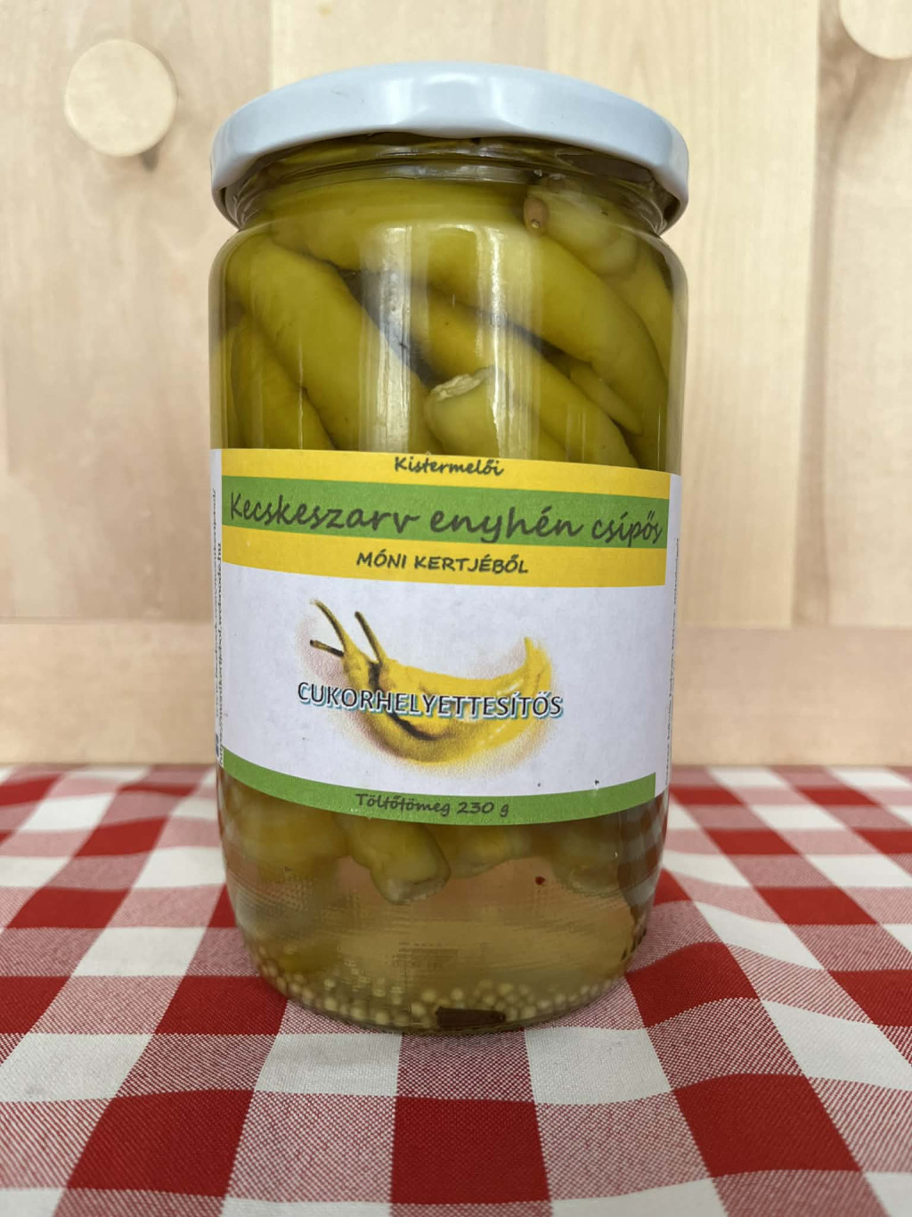 Enyhén csípős paprikánk vasárnapi ebédek mellé, de akár pizzára, tortillára is kiváló kiegészítő. Összetevők: Kecskeszarv paprika, Cukor, Ecet, Só, Nátrium-benzoát, Szódabikarbóna, Koriander, Mustármag, Borkén, Szegfűszeg, Babérlevél