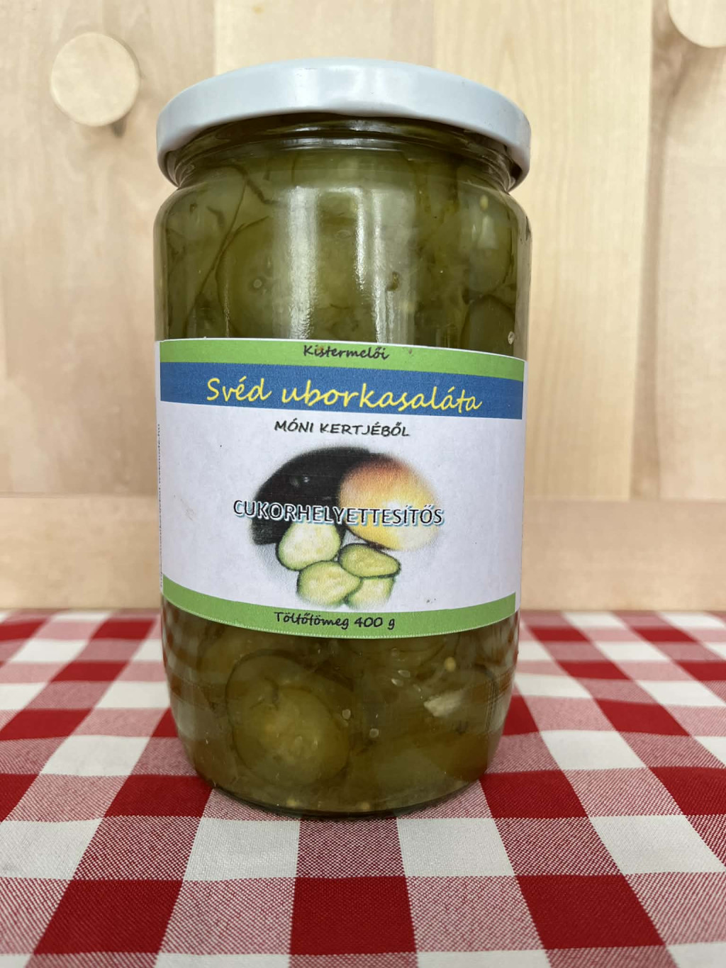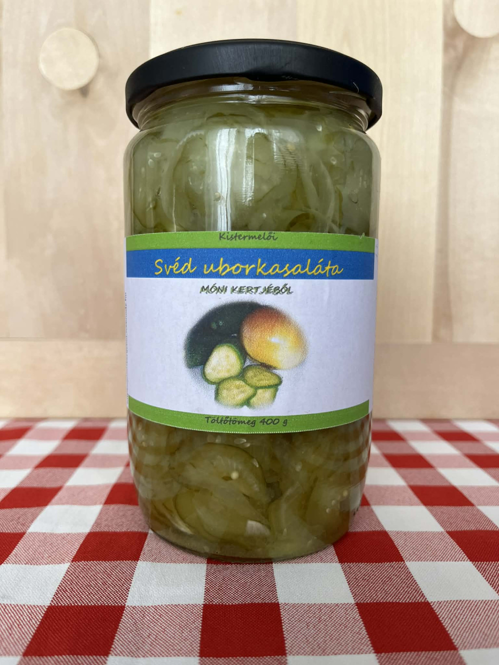 Ehhez az uborkasalátához csak egy kis erőre van szükség és már ehető is. Merthogy a nyitását követően azonnal fogyasztható. Hagymás uborkasaláta, mely nem a klasszikus édes uborkasaláta, hanem inkább ecetesebb, savanykásabb. Ostffyasszonyfáról egyik kedves vevőnk kérésére kezdtük, és a nagy sikerű bemutatást követően vált alaptermékünké. Összetevők: Uborka, Vöröshagyma, Cukor, Ecet, Só, Nátrium-benzoát, Szódabikarbóna, Mustármag, Borkén